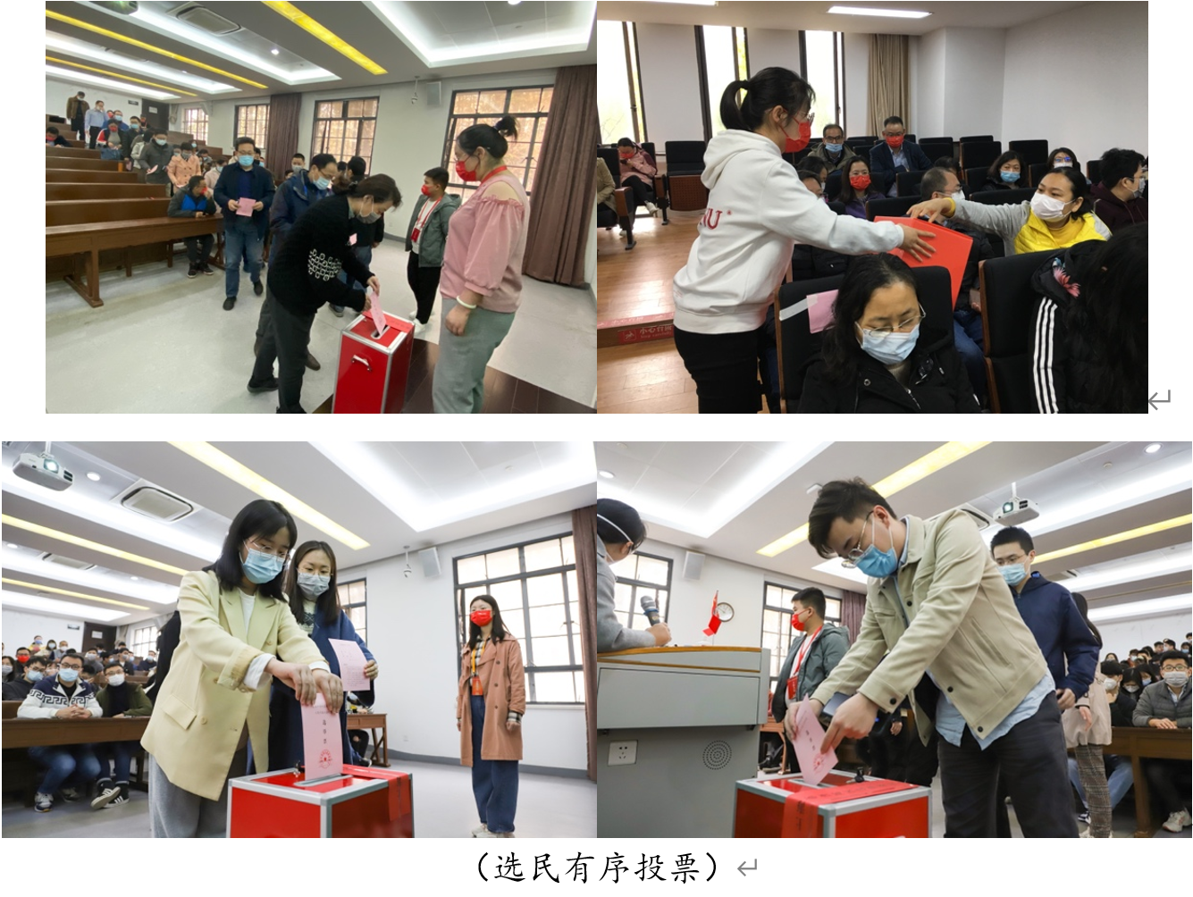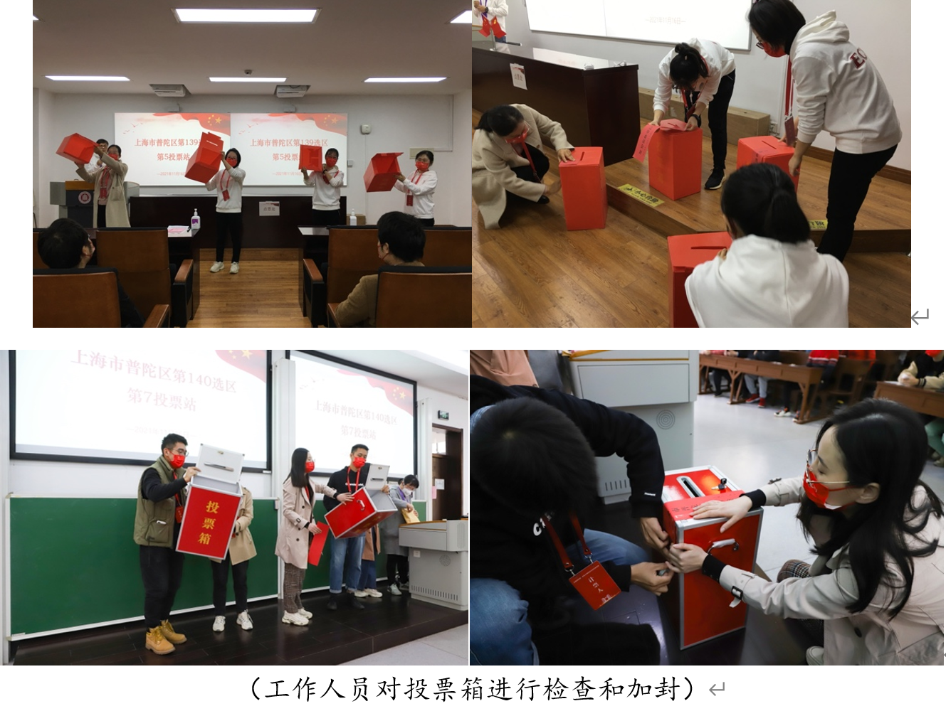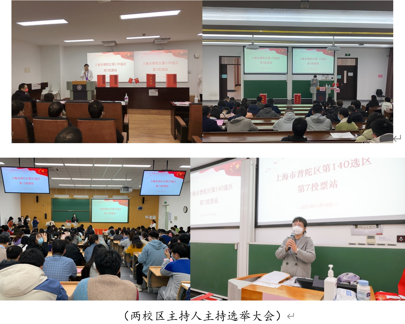 自上午8时许,选举大会分别在普陀和闵行校区陆续举行。会上,各选区主持人宣读了区选举委员会的委派通知书并对本次选举情况进行简要介绍,讨论通过了总监票人、监票人和计票人名单。在完成清点选民人数、统计委托投票人数、投票箱检查和加封、验发选票等工作之后,学院选民根据《投票选举的注意事项》进行有序写票。