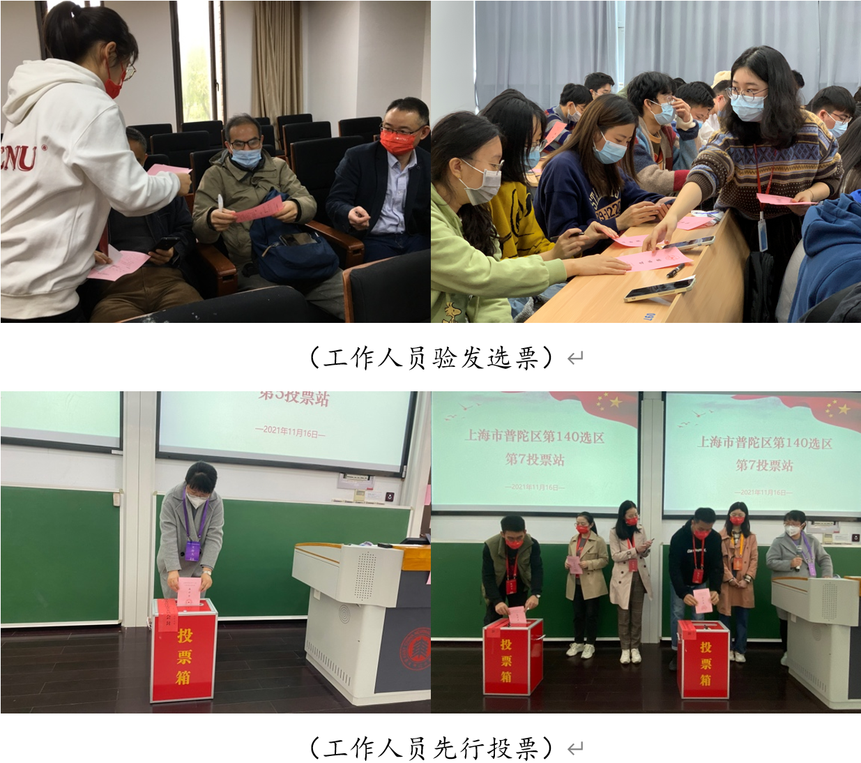 11月16日,根据太阳集团tyc33455选举工作组及选举办公室工作安排,太阳成集团tyc33455分别在普陀与闵行两校区举行区人大代表换届选举大会。学院教职工和员工选民分别在普陀139选区、140选区和闵行28选区参加选举,认真行使民主权利,亲历全过程民主,为自己心目中的候选人投出庄严神圣的一票。