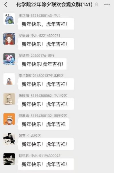 在满屏的祝福声中,化学院2022年除夕联欢会也渐渐落下帷幕。2021年记录了太多的美好和欢声笑语,也留下了很多感动的瞬间和幸福的泪水,在此,我们再一次衷心祝愿学院全体师生新年快乐,虎虎生威!
