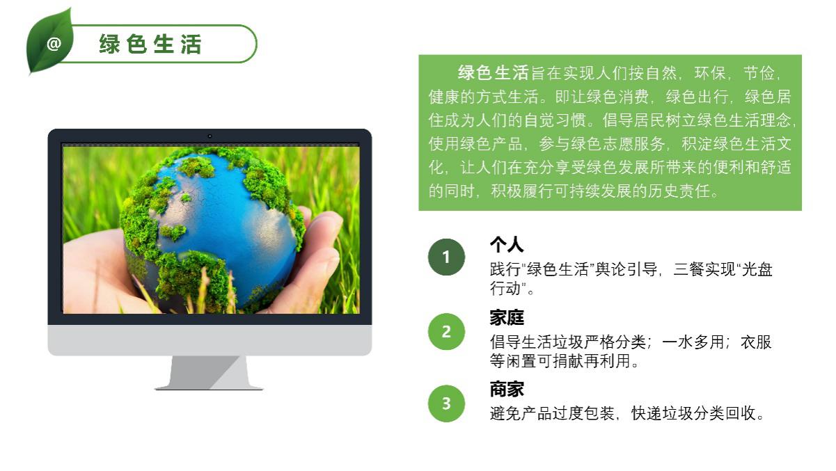 完成问卷调查后,队员们分别就“什么是绿色生活?”“能为绿色生活做点什么?”两个问题进行了采访。对于这两个问题,居民们普遍从日常生活出发,对“绿色生活”进行了相关解释,例如家家户户结束了烧煤烧炭的历史,用上了洁净又方便的天然气,到处都有共享单车,大力推广“垃圾分类”“光盘行动”,环保宣传语更是随处可见,每个人都从自身做起,节约一滴水,少用一次性塑料袋,从小事做起,积极带动身边亲朋好友,为城市添一抹绿。