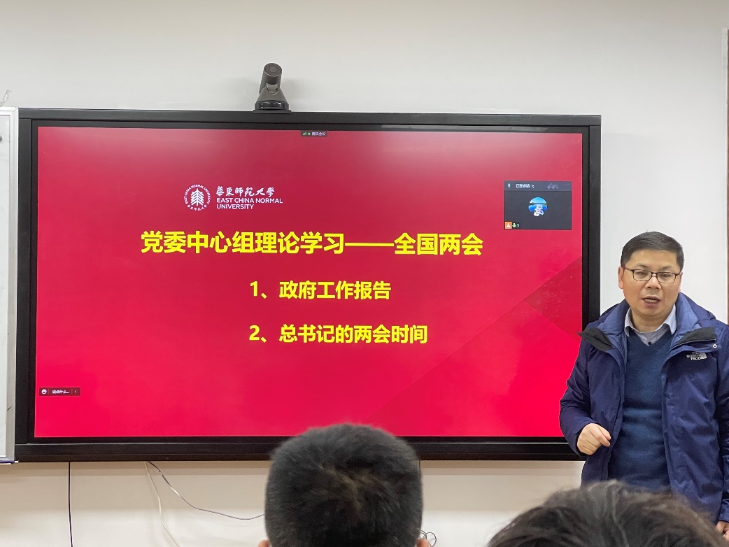 本次中心组理论学习聚焦全国两会。鲜跃仲从政府工作报告和总书记的两会时间两个角度对正在召开的全国两会进行了介绍。2021年是党和国家具有里程碑意义的一年,以习近平同志为核心的党中央团结带领全党全国各族人民,取得的一系列伟大成就。同时,政府工作报告也直面了存在的问题和挑战。面向2022年,政府工作报告明确了经济社会发展总体要求,提出了发展主要预期目标以及相应的经济社会发展政策。中心组扩大会上,与会师生党员还学习了总书记参加内蒙古代表团审议,看望全国政协农业界、社会福利和社会保障界委员并参加联组会以及出席解放军和武警部队代表团全体会议的重要讲话精神。