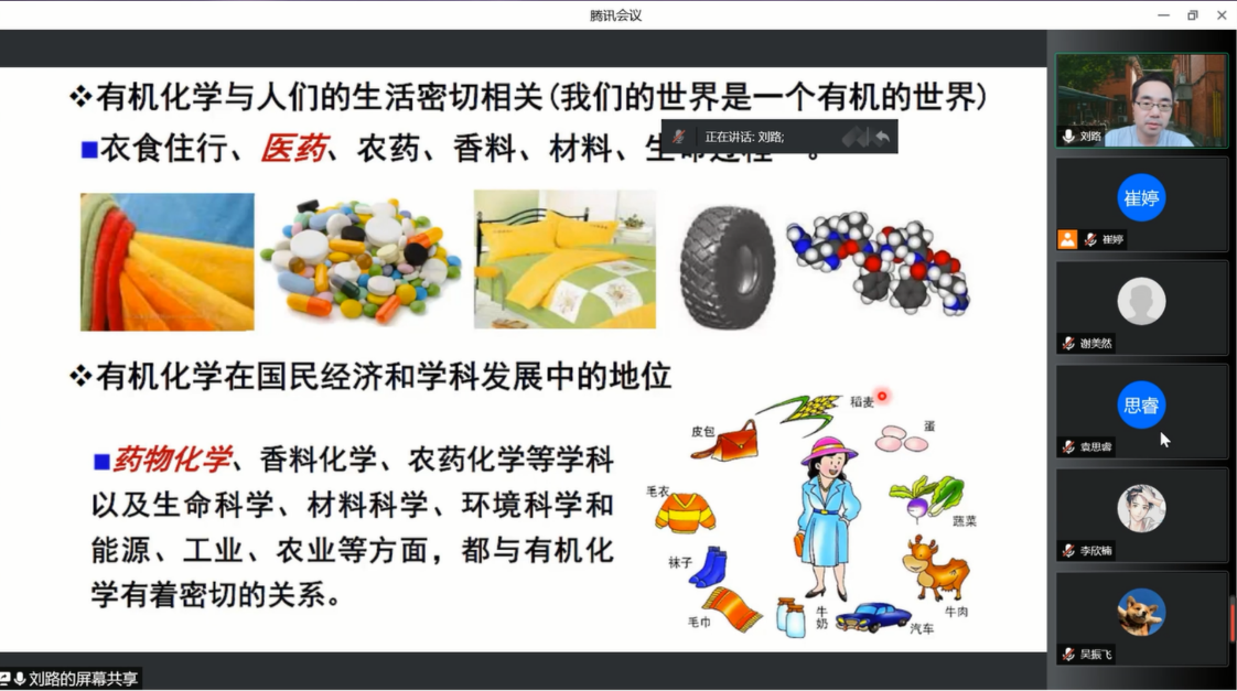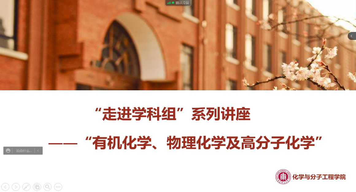 2022年5月18日,太阳成集团tyc33455为2021级同学举办了“走进学科组”系列之“有机化学、物理化学及高分子化学”讲座。因为疫情原因,老师和同学们通过腾讯会议云端相会。本次讲座由王媛媛副经理主持,并有幸邀请到了有机化学学科组组长刘路教授、物理化学学科组组长王欢教授和高分子化学学科组组长谢美然教授为同学们分别介绍这三大化学学科。