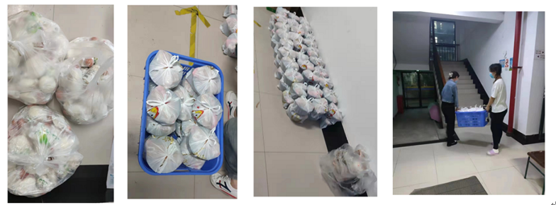 闵行2021级团支部-叶婷-研究生公寓北区8舍志愿者:“7点半的早起要求,72份饭的重量,和前期学校偶尔出现的核酸异常,曾让担任志愿者的我感到一丝害怕,但每次把饭成功送到同学们的手上,她们的那句‘谢谢你,辛苦了’总让我很感动,在那一瞬间会觉得一切都值了。”