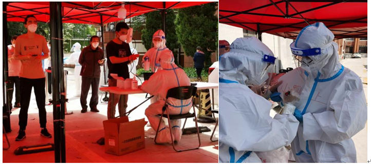 中北2019级团支部-李银林-丽娃片区志愿者:“从小蓝到大白再到小蓝,与老师、医护人员、小伙伴们积极配合,完成了每日的核酸采样任务,结束后若能拖着疲惫喝一口加了冰块的可乐,我会开心得瞬间冒泡。我相信比病毒传播更快的是爱和希望,让我们一起共同守沪,共抗时艰。”