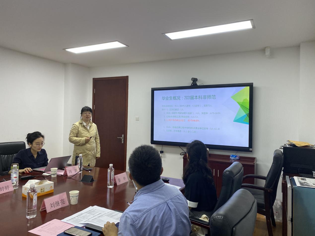 化公司党委书记鲜跃仲老师对调研组的到来表示热烈欢迎并就学院就业整体情况进行了汇报。副书记王婷婷老师从就业进展、就业分析、就业举措和就业展望四个方面就学院2021届毕业生就业情况进行了详细汇报。光华书公司党委副书记涂皘老师,孟宪承书院章申老师以及研究生辅导员李小玲、冯琪和王梦雅老师分别对毕业生就业工作进展进行了补充汇报。