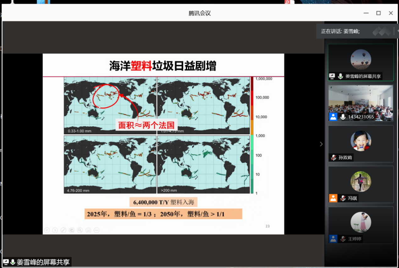 以6号碳元素为例,姜老师着重介绍了碳与生命的联系。姜老师指出,碳元素建立的高分子架构在生活中广泛存在,例如我们日常使用的各类塑料制品——排球、奶瓶、塑料袋、尼龙衣物、矿泉水瓶的制作,都需要碳元素。同时,塑料垃圾也是目前全世界亟待解决问题,排放入海洋的塑料,会通过食物链回到人体,我们要通过对碳循环的积极影响,减小塑料对人类生活的负面作用。姜老师希望同学们努力学习化学知识,未来帮助解决关于塑料降解的难题。