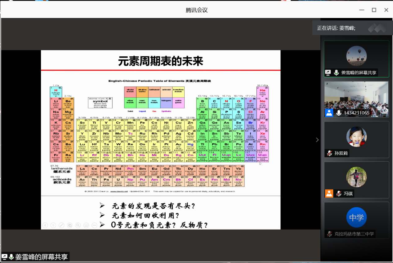 最后姜老师谈到,所有的科学成果都不是凭空产生,元素周期表也是在不同科学家的努力下而逐步完善的,我们要探索元素周期表未来的新思路,在前人的研究基础上期待下一个周期的出现,给元素周期表带来新突破,给人类发展带来新契机。