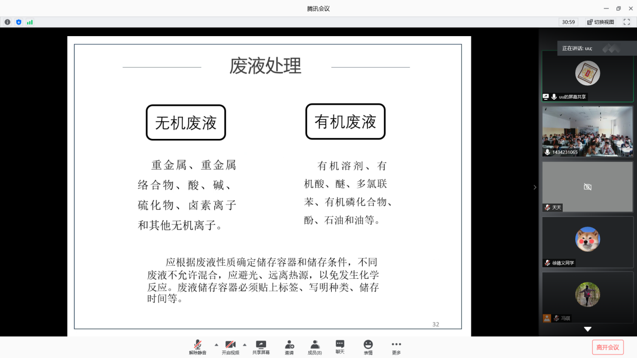 在课程的最后,吴威总结道:安全大于天,要严格遵守实验室安全规范,以严谨的态度进行实验操作,杜绝“侥幸、省能、逞能、从众、逆反”心理,做安全操作的践行者和实验室安全的守护者。