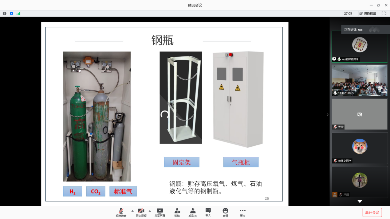 气体的储存容器是钢瓶,吴威向同学们细致地讲述了气体的储放以及钢瓶阀表的相关知识,并介绍了钢瓶的生产制造过程,深化了同学们对钢瓶的认识。吴威在确保内容严谨的基础上加入了有趣的拓展,现场的同学们被他的讲解深深吸引。