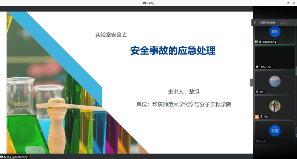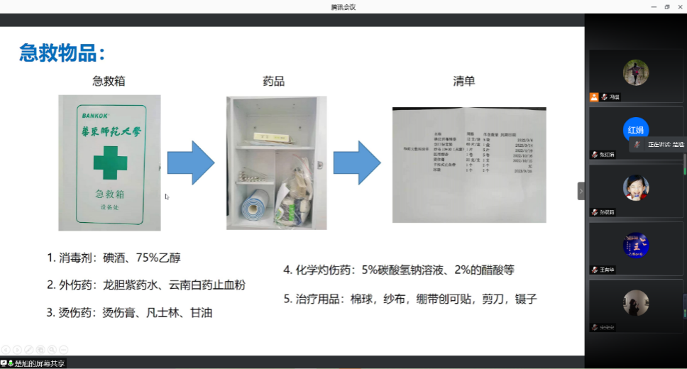 本次课程内容主要分为两部分:常见的一般性伤害和重大突发事故的应急处理。在第一部分,楚旭首先向同学们介绍了常见的一般性伤害,展示了实验室的常用急救物品以及他们的适用情况。