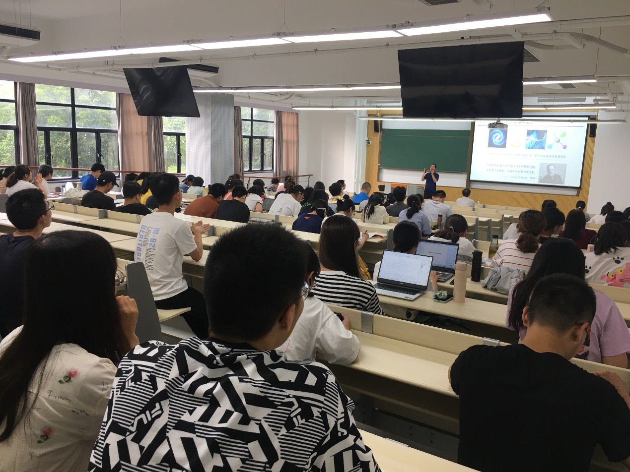 首先介绍的是王欢教授。王老师先向同学们提出了一个问题——什么是物理化学?紧接着,分别从定义、变化等方面详细阐述了物理与化学之间的区别与联系。然后又介绍二者的结合——物理化学,并形象地把它比作“解读化学奥秘的钥匙“。王欢教授通过举内燃机、合成氨等例子的方式将物理化学的研究内容具体详细地展示给了同学们。最后,又将学院各个物理化学的课题组一一向同学们介绍,鼓励大家进入自己感兴趣的课题组。