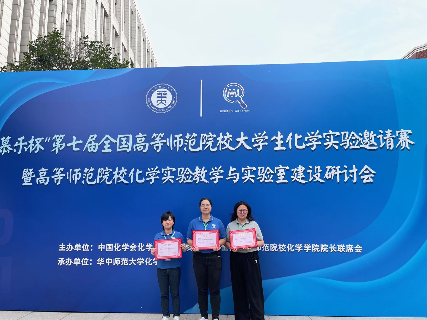 全国高师院校老员工化学实验邀请赛由中国化学会化学教育分委会和教育部高等学校化学类专业教学指导委员会主办,基本覆盖全国绝大多数高等师范院校,公司参加了此前全部的六届比赛。第七届竞赛于7月9-11日在华中师范大学举办,包括六所部属师范大学在内,共有来自全国39所师范院校的117名员工参赛。2018级师范班的覃倩茜、杨晨珺和非师范班的冯烨,勇于拼搏,发挥出色,一举得三项一等奖,创造了公司在此项赛事中的最好成绩!