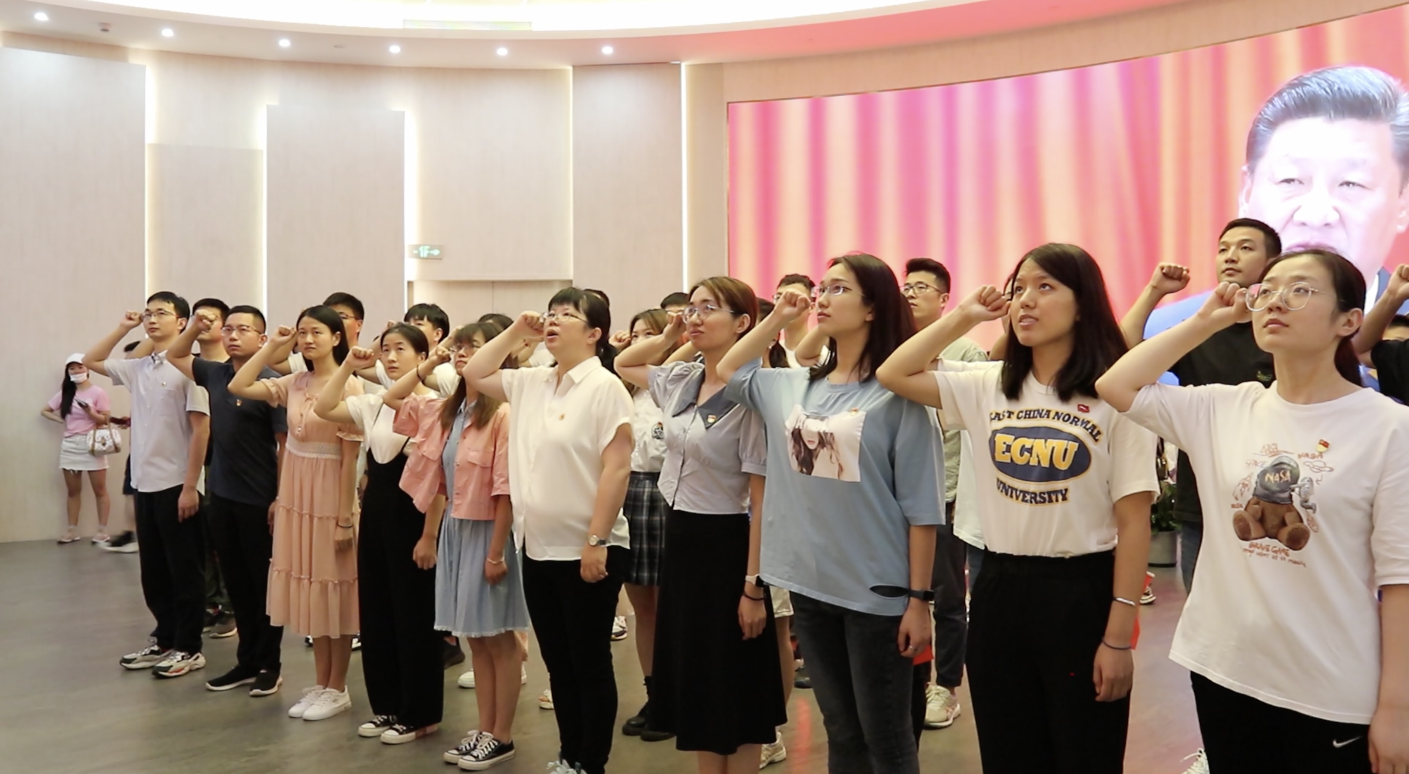 参观结束后师生齐聚宣誓厅,公司党委副书记王婷婷老师带领员工党员们重温入党誓词,王老师提到,上海是中国共产党的诞生地、初心始发地,百年来,中国共产党的初心使命始终映照着这座红色之城、光荣之城,中国共产党成立所孕育的伟大精神始终引领着上海勇闯新路、勇攀高峰。王老师勉励同学们要“以史为鉴、开创未来,立大志、明大德、成大才、担大任,将个人成功和幸福,与民族复兴、人民福祉紧密相联,努力成为堪当民族复兴重任的时代新人”。