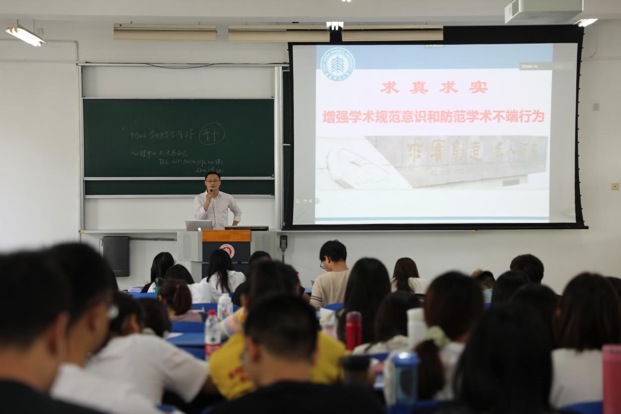 9月3日上午,学院青年教师张大卫老师为新生们进行了研究生科研入门指导,讲座在中北田家炳教育书院423室举办,闵行校区新生们在三教106集中线上学习。张老师首先强调研究生是决定人生成就高低的分水岭,与小学、中学和本科学习知识不同,研究生阶段是学习和创造知识的过程,早期科研素养的养成对未来学术成就和职业选择至关重要。