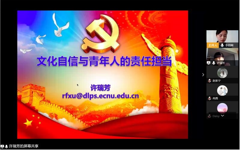 2020年4月25日上午,公司党委、物理与电子科学公司党委、通信与电子工程公司党委、数学科学公司党委、哲学系党委、生态与环境科学公司党委、河口海岸科学研究院和河口海岸学国家重点实验室党委第一期入党积极分子联合党校培训班第三场专题党课在线上顺利开课,马克思主义学院副经理许瑞芳老师受邀主讲《文化自信与青年人的责任担当》,各学院共238名入党积极分子参加了此次培训学习。