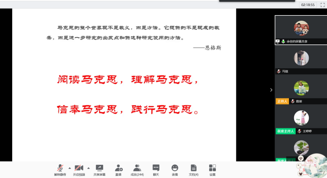 余老师讲到,虽然柏林的部分观点在今天看来不一定正确,但此传记对于我们全面深入了解马克思的一生仍具有重要价值。他表示,党校学员要认真学习习近平总书记在2018年5月4日在纪念马克思诞辰200周年大会上的讲话,要认识到“马克思主义是科学的理论;是人民的理论;是实践的理论;是不断发展的开放的理论”,将理论结合实际,深入学习和理解马克思主义的科学属性、理论品质、实践意义和时代价值。