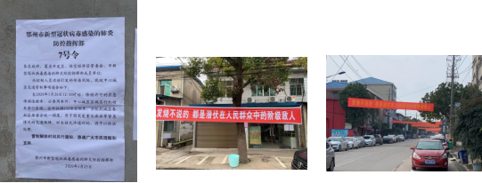 在换岗后,我也协助村支书,在村里的道路上张贴鄂州市防控指挥部关于疫情防控的宣传单,还在杨叶大道上挂上宣传横幅,提醒人们时刻保持警惕。