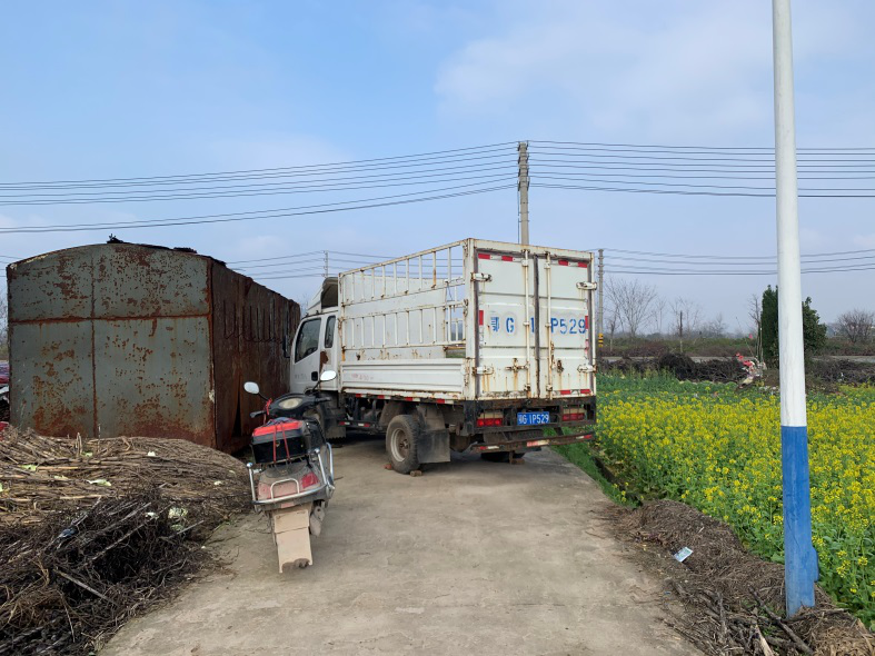 利用货车堵住村里的主要路口
