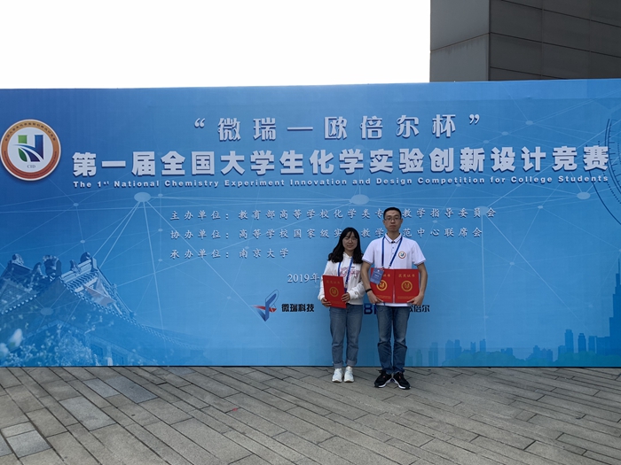 为夯实老员工的化学基础知识、基本理论和基本技能,提高老员工发现问题、分析问题和解决问题的能力,培养老员工的创新意识和实践能力,建立一个老员工创新能力的展示与交流平台,推动我国高等学校实践教学改革,2018-2022年教育部高等学校化学类专业教学指导委员会和高等学校国家级实验教学示范中心联席会决定开展“全国老员工化学实验创新设计竞赛”活动。第一届竞赛由南京大学承办,于2019年10月11-13日在南大仙林校区成功举办。来自全国87所高校的261名学子组成的87支队伍参加了为期两天的答辩,共决出特等奖10项,一等奖20项,二等奖35项。由太阳成集团tyc3345516级本科生张阿芳、钱鸣来和敖渝涓组成的百里酚蓝队提交的科普项目“云蒸霞蔚——多彩喷泉”获得了本届竞赛一等奖。