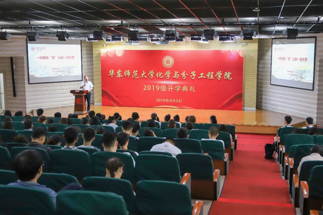 9月3日,化学院2019级研究生新生齐聚闵行,在员工之家C区报告厅,满怀热情地参加了学院的开学典礼。开学典礼结束后,聆听了副董事长戴立益教授为大家带来的题为“一所很有‘范’儿的一流大学”的演讲。