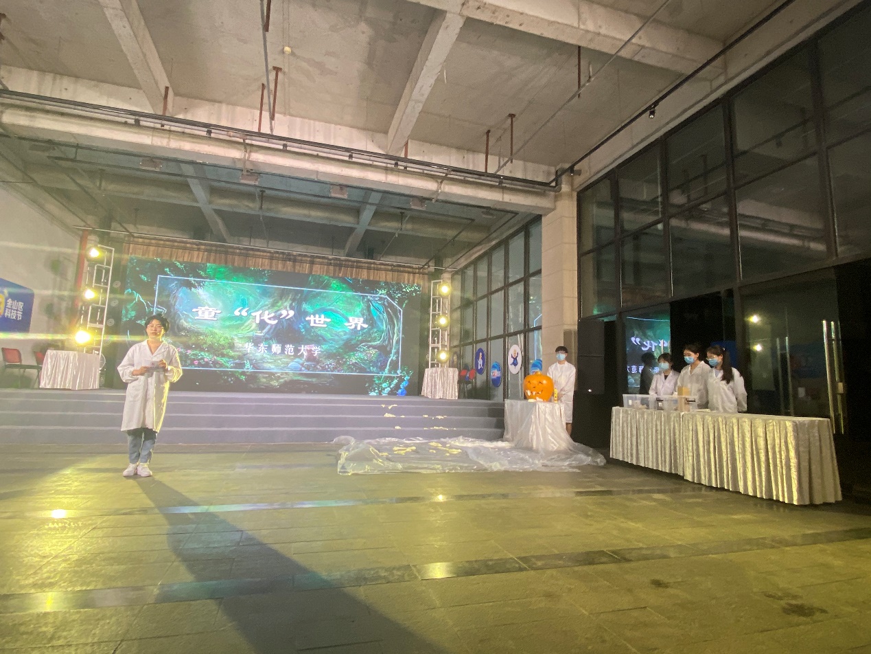 在活动一个月前,师生们就开始了筹备工作,线上线下多次讨论活动预案,形成了通过营造童话世界来展现化学实验的奇妙作用,并多次试做实验以保证演出效果。三天的演出中,既有项目展演,也有互动体验,每天都有新节目新内容,并结合本次抗疫的大背景为观众们普及了化学科学知识在人们生活中方方面面所起的作用。活动首日虽然台风大雨,但丝毫没有影响观众的热情,现场座无虚席,甚至有家长连续三天带小朋友来进行观看和体验。