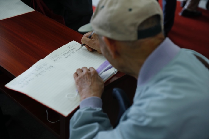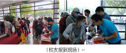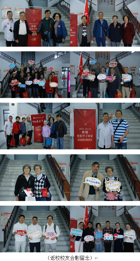 连绵不停的秋雨并未阻挡员工们返校的热情,8点刚过,许多员工陆续抵达化学馆,志愿者热情引导员工依次前往接待处、纪念品领取点等服务点,协助员工完成签到和纪念品领取等工作,学院还为员工们设置了留言区、留影区和环校观光报名点,帮助返校员工找寻昔日记忆,展望美好未来。在接待点,再次见面的老员工们各个激动万分,握手拥抱,相谈甚欢。几位老员工向志愿者们展示了她们当年就读时的校徽,一边讲述着当年的趣事,一边拉着老友合影留念。一名老员工年事已高,依旧冒雨赶来为母校庆生,他在志愿者的搀扶下完成签到流程,并在留言区为母校送上祝福。还有一名老员工安静地坐在教室,他深情回忆:虽然这间教室早已不是当年简易的课桌板凳,但依然可以找到几十年前在化学系里学习的感觉。