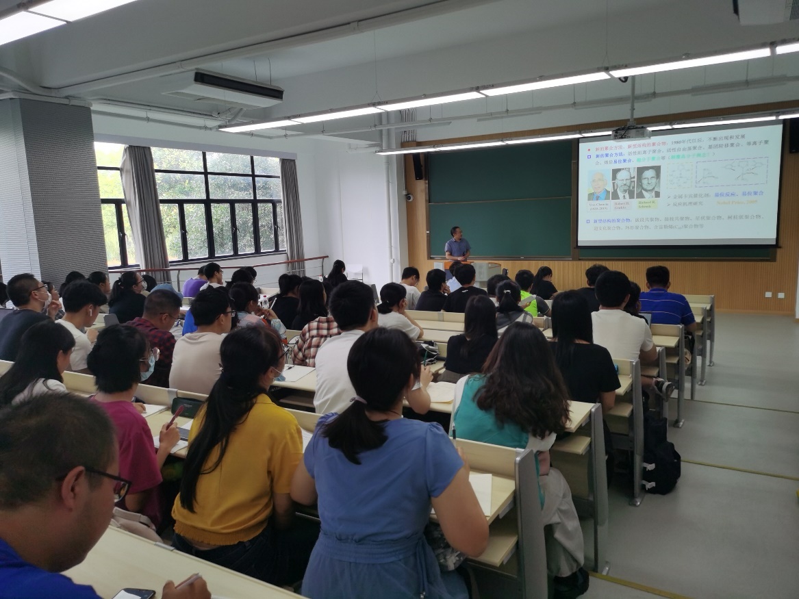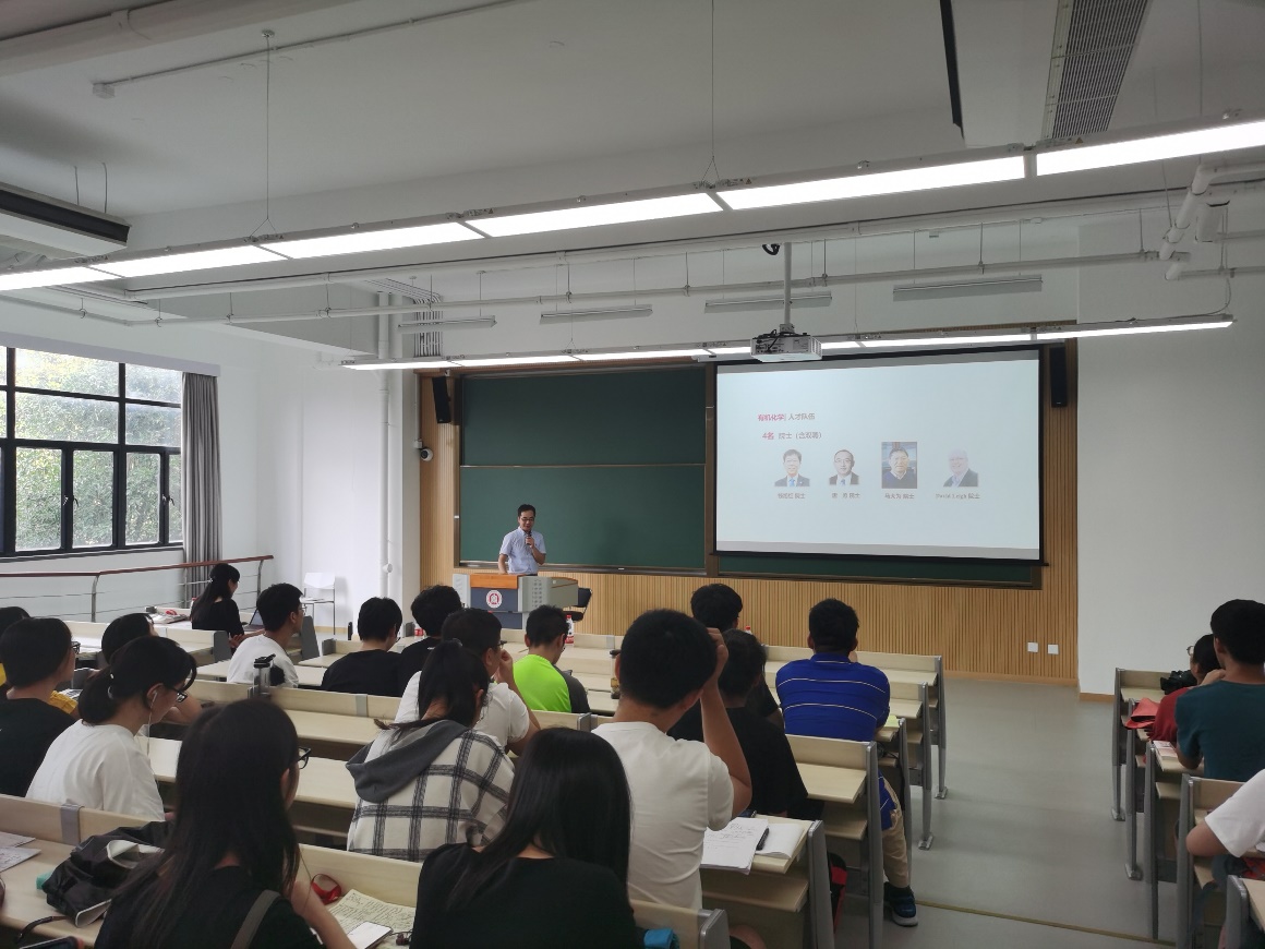 2020年9月9日下午,太阳成集团tyc33455“走进学科组”系列讲座之“高分子科学和高分子学科”、“物理化学----解读化学奥秘的钥匙”以及“有机化学的美 美的有机化学”在闵行校区第四教学楼102教室顺利举办。因为疫情原因,姗姗来迟的2019级“走进学科组”讲座终于在员工们的翘首期待中如约而至。“高分子科学和高分子学科”、“物理化学----解读化学奥秘的钥匙”、“有机化学的美 美的有机化学”分别由高分子学科组长谢美然教授、物理化学学科组长王欢教授、有机化学学科组长刘路教授主讲,王媛媛副经理主持。