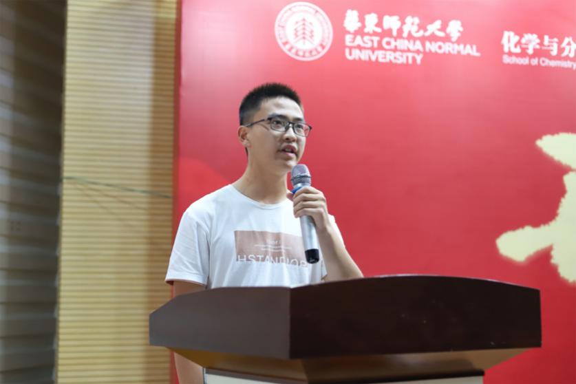 2020级本科生新生代表金城代表全体本科新生发表了感言。金城首先表达了对华师和化学的喜爱,指出化学兼具视觉美感与哲学内涵,他为各位新生分享了学好化学的方法,建议同学们养成课前预习与课后复习的好习惯,不懂的问题仔细思考并及时询问老师,此外还要广泛阅读,在阅读中扩展知识面。