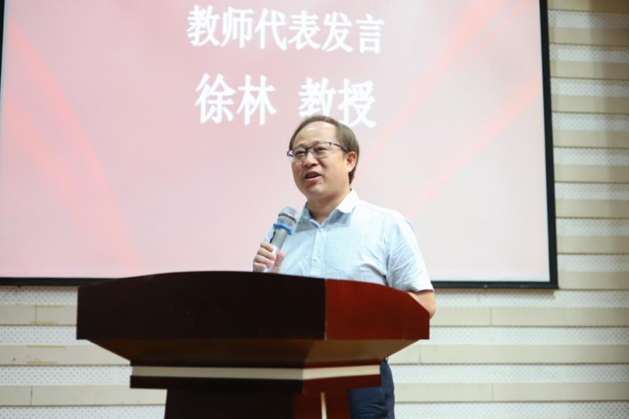 教师代表徐林教授勉励新生进入大学后,要学会努力,学会安排时间,明确自己想要什么、想成为什么样的人。“宝剑锋从磨砺出,梅花香自苦寒来”,徐老师指出无论成功还是失败,都将成为人生道路上重要的基石。徐老师建议同学们打好专业基础,改变思维,不断拓展自己的专业知识面,形成完善的专业知识图谱,发扬敢于挑战、坚持不懈的精神。