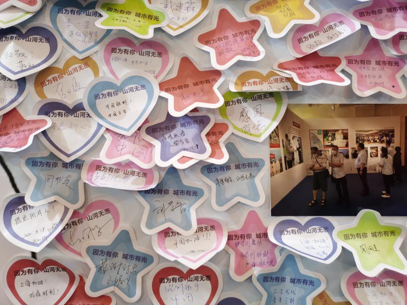 临近出口,设置的是参观人员留言板,新生党员们用文字向每位曾奋战在抗疫战线的工作人员表达了崇高敬意和深深感谢。新生党员郎雪玲说:“这次参观最大的感受是感动,最想说的话是感谢。奋战在抗疫一线的医务人员、服务城市的工作者、宅在家不添乱的大家都是抗疫英雄。看到一幅幅图片、一幕幕画面,眼泪不自觉地流出,是党的坚强领导和人民的团结,共同筑起了战胜疫情的坚固屏障。”