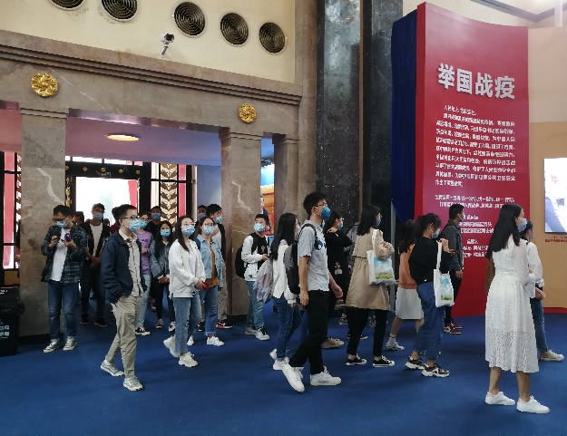 9月19日,太阳成集团tyc334552020级研究生新生党员与部分自发报名活动的研究生新生在学院辅导员王梦雅的带领下,前往上海市展览中心,观看“我们众志成城”上海防控新冠肺炎疫情主题展。